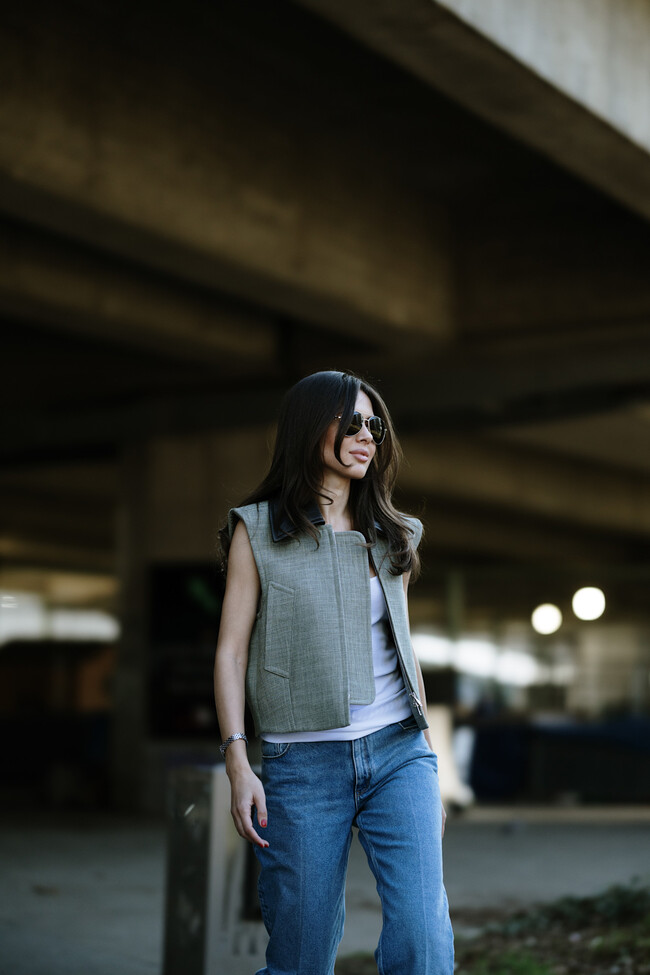 Para completar este outfit, una cartera negra añade equilibrio y unas joyas doradas o plateadas darán un aspecto muy sofisticado y clásico. Un look muy sencillo ideal para llevar una americana oversize en tono negro que haga match con el bolso. Si queremos darle un toque más veraniego, una cartera de rafia es una gran opción.