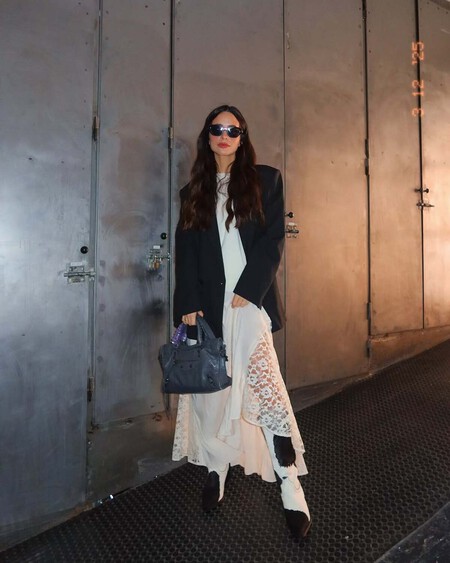 Para looks nocturnos, como cenas con amigas, el color blanco también es una opción excelente. La combinación con una americana en tono negro es clave para lograr un contraste sofisticado. Además, en la era Mocha Mousse, el marrón se ha convertido en un tono esencial y en tendencia, que quedaría divino con el blanco. Optar por un bolso shopper puede restarle formalidad, pero si buscamos un look más refinado, me quedaría con una cartera del mismo tono. Las botas cowboy, con su toque arriesgado, son ideales para la temporada de entretiempo, aportando ese detalle de originalidad que eleva el conjunto.