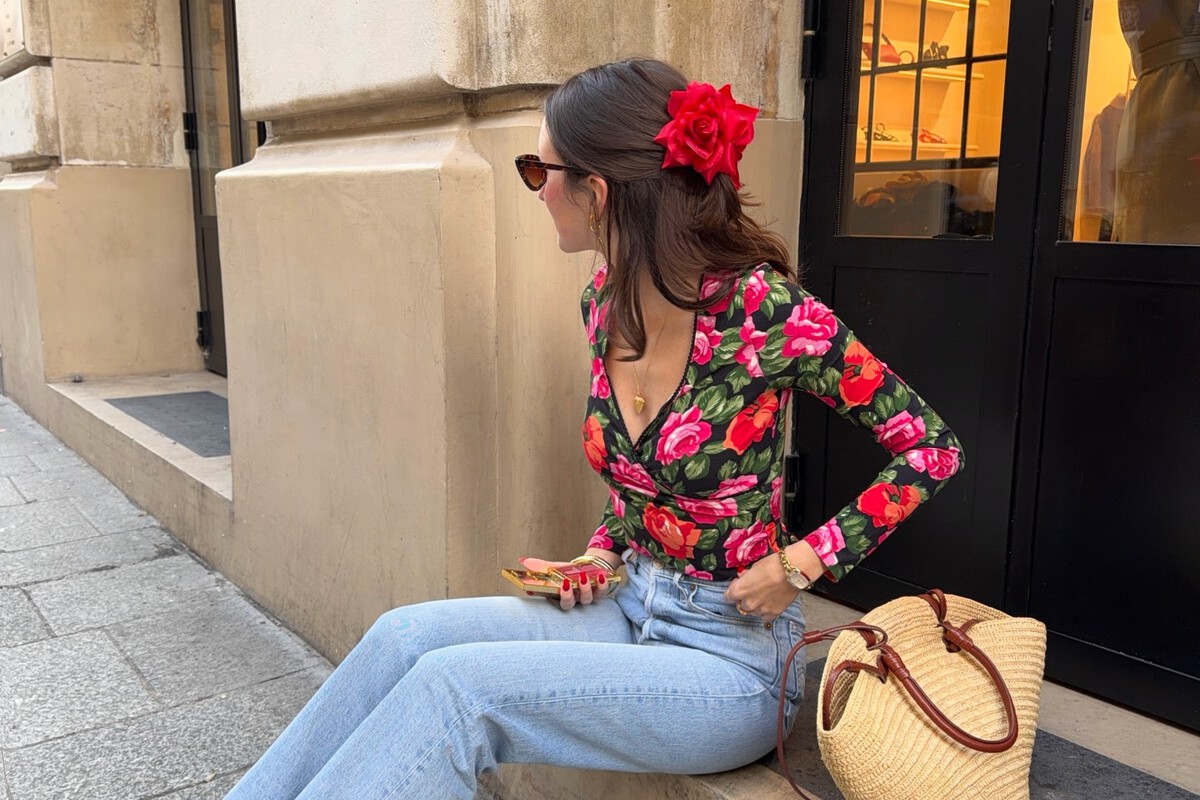 Esta propuesta de la influencer Erea Louro es un ejemplo perfecto para llevar el bolso de Ralph Lauren. Un look formado por un vestido midi con un estampado de flores muy primaveral y una camisa verde oliva pura tendencia. Un outfit sencillo que ha completado con unas sandalias planas.