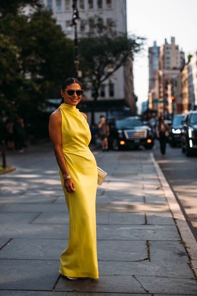 Cómo combinar un vestido amarillo en un look de invitada