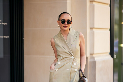 Los vestidos largos son mi Imperio Romano durante el verano. Me hacen soñar con las noches de verano y podemos combinarlos con muchos accesorios para que levanten el outfit. En esta propuesta del street style de París, el look tiene una apariencia muy elegante y, para darle un toque cómodo y más informal, las sandalias con detalles metalizados de Geox quedarían genial.
