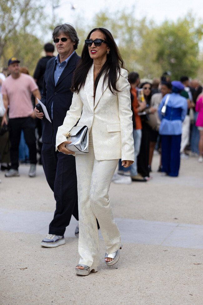 Los trajes de pantalón blanco son un must cada verano. Siempre suman elegancia al look y son tan versátiles que podemos llevarlo en infinidades de ocasiones: desde la oficina hasta un bautizo. Solo es necesario cambiar los complementos. Por ejemplo, esta propuesta es más formal y el evento en cuestión tiene mucha importancia. La cartera a juego con las sandalias es una prueba de ello.