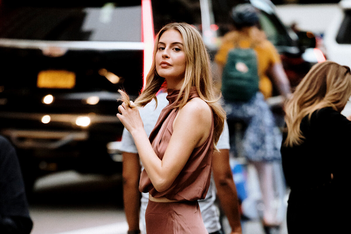 Este conjunto es una opción sencilla y discreta que triunfará en cualquier ocasión especial, desde una cena elegante hasta una reunión de trabajo. Para completar el outfit, podemos añadir un fular por si refresca y, así poder llevarlo todas las noches de verano.