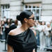 En este look del street style de París, la presencia de los tonos pasteles está asegurada. Un outfit muy colorido y elegante formado por una falda plisada y una blusa de rayas. Una opción perfecta para ir a la oficina combinado con estas sandalias con tacón cómodo de Merkal.