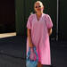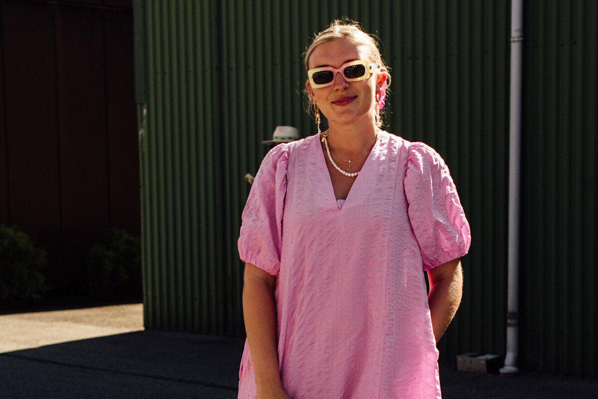 En este caso apostamos por el más es más con un vestido rosa y un bolso celeste (ambos a juego con las sandalias) y cambiamos el modelo pala multicolor de este look por el nuestro. Los accesorios como el collar de perlas y las gafas de colores elevan el outfit a un barbiecore maximalista (un estilo que nos encanta en verano). Un estilismo pura vitamina capaz de levantar el ánimo de cualquier lunes caluroso.