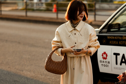 La prueba gráfica de que se puede ser tremendamente original con prendas aparentemente anodinas y sin gastar un dineral. Yo personalmente aprovecharía el efecto wow del ramo verde de la foto para encontrar un bolso shopper inspirado en esa mezcla de colores y conseguir el look de oficina más cómodo y cool de todos los tiempos.