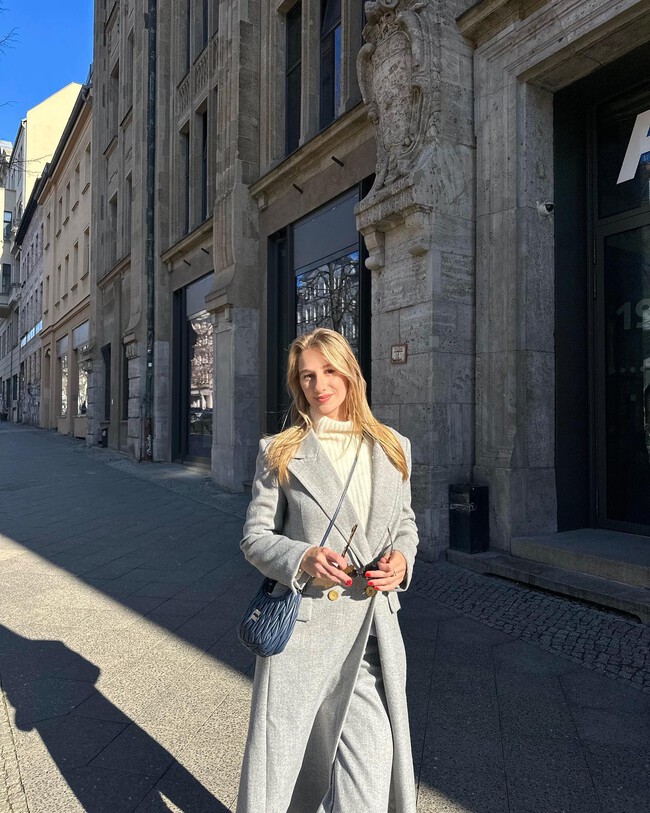 Los total look beige son un acierto porque son muy elegantes y quedan genial tanto de día como de noche. Esta propuesta de la influencer María Fernández Rubies es ideal para llevar tanto a la oficina como a cenar cualquier noche de otoño. Para elevar el outfit, podemos apostar por un bolso acolchado en el mismo tono que el conjunto.