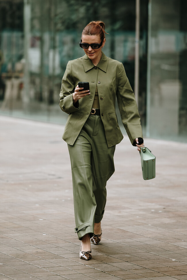 En una combinación más clásica con una paleta de tonos neutros, esta propuesta de la influencer Agostina Saracco es un acierto para el verano. Luce los pantalones verdes con una camiseta blanca básica y unas bailarinas negras que hace match con el jersey que ha colgado sobre sus hombros, ideal para cuando refresque y caiga el sol.