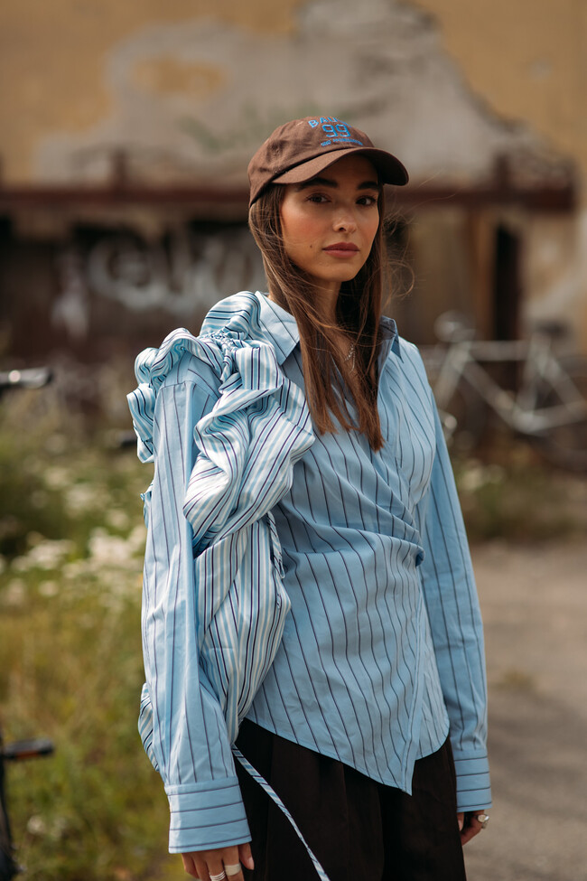 Para llevar estas Skechers con estilo a la oficina sin perder elegancia, basta con elegir un total look tan sofisticado como este del street style de Copenhague. Un traje de sastre en color arena, con un maxi bolso tipo cartera en marrón chocolate -como éste de Parfois- y rompiendo la estética clásica con nuestras sneakers azul cielo.