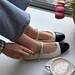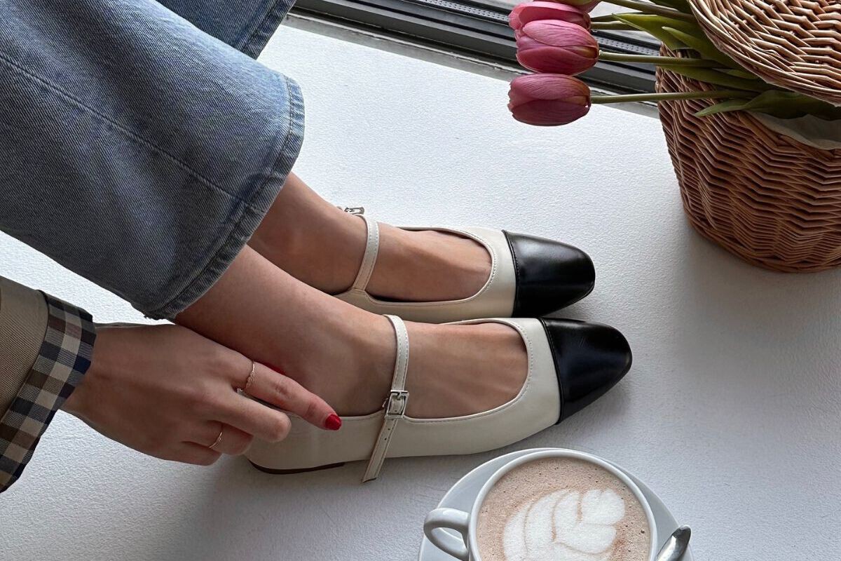 Las bailarinas bicolor se llevan con vaqueros culotte