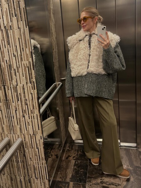 Unos pantalones negros de vestir serán nuestros mejores aliados y quedan genial con los zapatos de piel con vibes de mocasines de Gioseppo. Este look es el ejemplo perfecto para recrear cualquier día de la semana con una blazer oversize. En cuanto al bolso, un modelo blanco será el protagonista, aunque también podemos combinarlo con una bandolera burdeos a juego con el tacón.