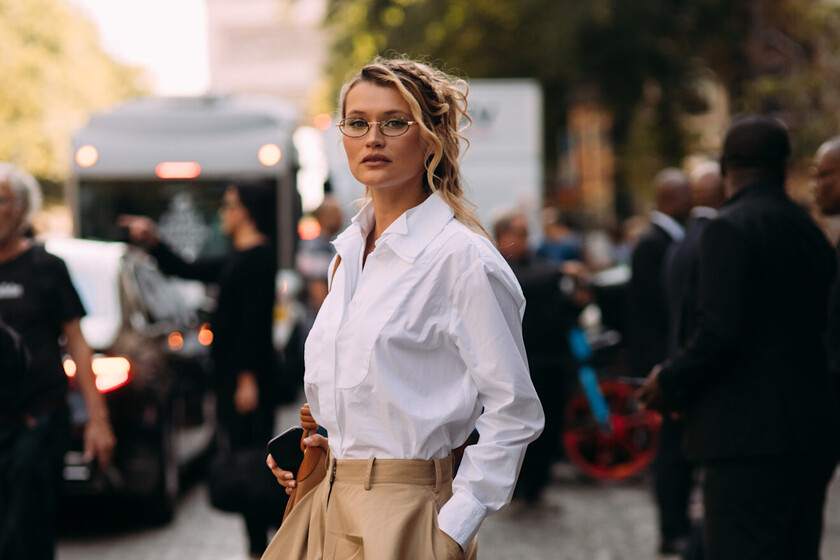 En cuanto al bolso, ese shopper color camel es buena opción y combina con las zapatilla, dándole una esencia más sport al conjunto. En los outfits de entretiempo, se puede cambiar el jersey oversize por una camisa blanca atemporal que nunca falla es un gran clásico del armario cápsula.