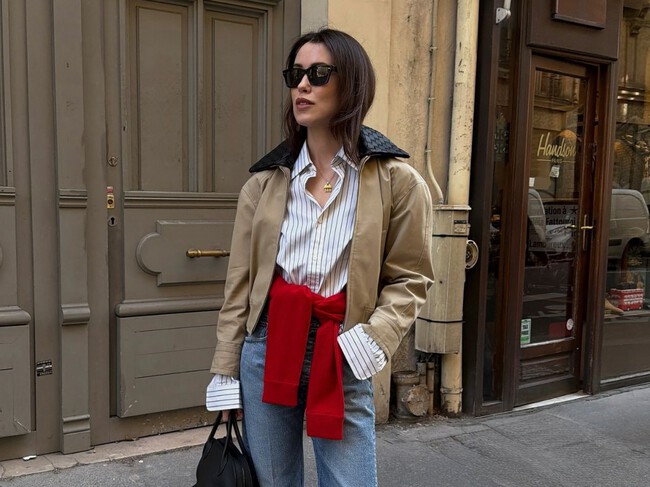 La forma clásica de sacarles partido es recurriendo a otra tendencia del pasado que regresa en 2026: los stilettos. Así los luce María Fernandez-Rubies y completa el look con una camiseta básica y una gabardina verde oliva. Un combo elegante y profesional que podemos llevar a la oficina sin problema.