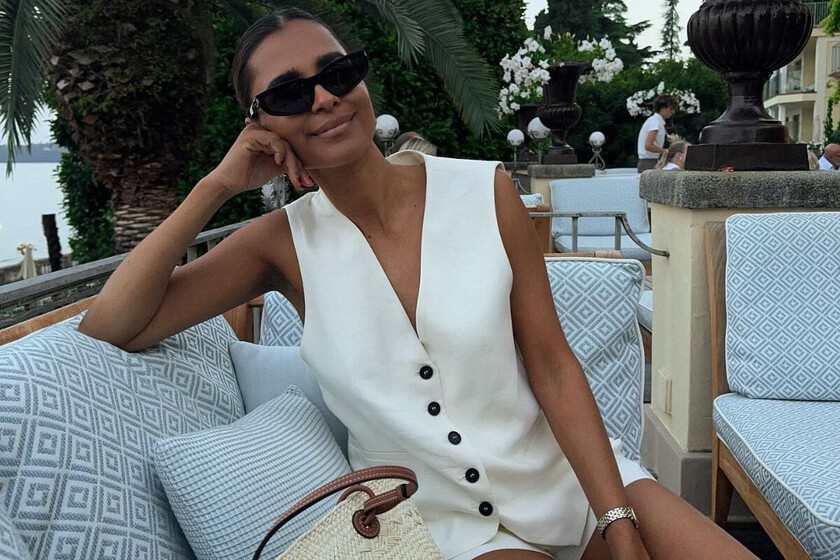 Por ejemplo, este conjunto boho con pantalón bombacho en color blanco roto y una blusa holgada con escote barco súper chic. El típico que puedes llevar al chiringuito de playa para ser la más cool, pero que también viene de perlas un domingo para dar un paseo por la ciudad como marcan las tendencias del 2026.