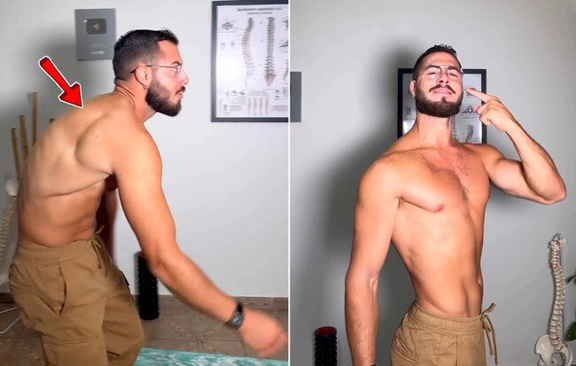 El osteópata y entrenador personal Pablo Iglesias ha mostrado en su cuenta de Instagram @pablo.pilatesreal un ejercicio muy sencillo que todos podemos hacer en casa para corregir la postura y evitar que nos salga la antiestética chepa. Según este entrenador, para combatir esta dolencia, el entrenador recomienda "realizar ejercicios que te permitan liberar la retracción muscular que existe en tu musculatura pectoral".