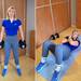 Da un paso atrás o adelante según te resulte más cómodo y desciende en estocada, dejando caer la mancuerna de forma controlada hacia el suelo sin llegar a tocarlo. El tronco debe inclinarse ligeramente, manteniendo la espalda recta, para activar bien el glúteo. Empuja con el talón de la pierna adelantada para volver a la posición inicial. Realiza 10 repeticiones por pierna, cambiando de lado al terminar.