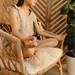 El movimiento final propuesto por esta entrenadora de yoga consiste en una torsión ligera con una pierna cruzada sobre la otra. Apoya la mano opuesta sobre el muslo para guiar suavemente la rotación del tronco, inhalando mientras abres el pecho y exhalando al volver a la posición inicial.