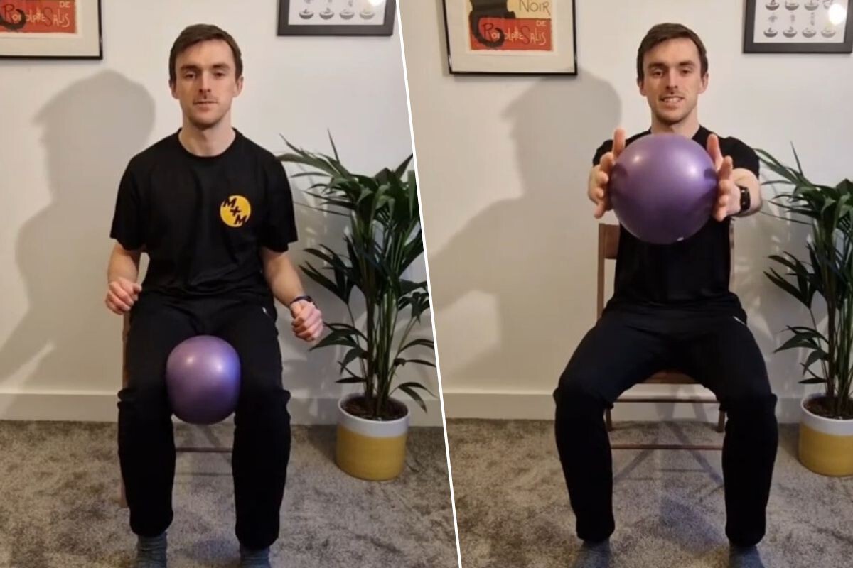 Con estos cinco movimientos, constancia, una silla y una pelota pequeña, es posible trabajar el core, los brazos, el tren inferior y la movilidad de la columna sin salir del salón de casa.