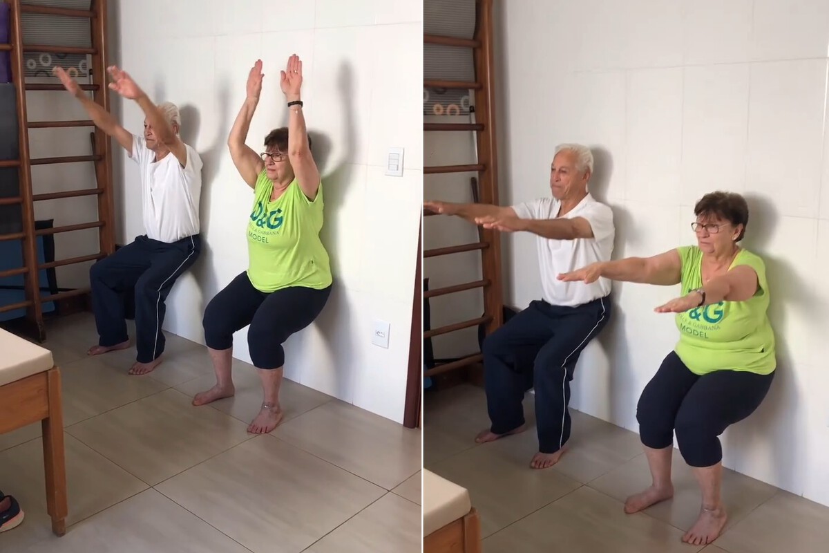 Este ejercicio combina trabajo de piernas, movilidad de hombros y control postural en un solo movimiento, y resulta especialmente útil para mantener la fuerza necesaria para sentarse y levantarse con facilidad, además de favorecer la coordinación entre la parte superior e inferior del cuerpo.