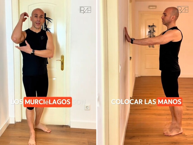 La técnica es fundamental para que el ejercicio funcione y no acabemos lesionándonos. "Vamos a colocar las manos frente al pecho, vamos a alejar los pies de la pared, unos 70-80 cm. Levantamos los talones y ahora con el cuerpo completamente estirado, rígido, bloqueado, vamos a flexionar los codos, pegados al costado, hasta que la nariz toque la pared, y ahí vamos a estar completamente para que se active el tríceps", detalla López.