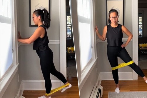 En esa misma línea, la fisioterapeuta Dr. Nancy ha diseñado una rutina de cuatro ejercicios con cinta elástica pensada específicamente para adultos mayores. Su propuesta no exige ir al suelo, no genera impacto articular y puede realizarse en casa con el apoyo de una pared. El único material necesario es una banda elástica, un elemento que la revisión sistemática sobre entrenamiento de fuerza y prevención de caídas publicada en Redalyc identifica como adecuado para trabajar la musculatura de cadera con una intensidad de media a baja, especialmente útil como parte de una rutina funcional.