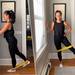 Cómo se realiza: Mantén la cinta elástica por encima de las rodillas. Apóyate en la pared con la mano derecha para buscar estabilidad. Desde una posición erguida, eleva la pierna derecha lateralmente hasta donde el control del movimiento lo permita, sin inclinar el tronco hacia el lado contrario. Regresa lentamente a la posición inicial, sin dejar caer la pierna. Repite el movimiento con la pierna izquierda, y realiza entre 10 y 12 repeticiones por cada lado.