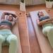 Desde esa misma posición, con los antebrazos cruzados ya sobre la cabeza, se flexiona la columna lateralmente de un lado al otro. "Intenta realizar el movimiento desde la cintura", indica la instructora. No es un balanceo de brazos, sino una flexión que parte del tronco, y la cabeza acompaña de forma natural, sin forzar el cuello, y las caderas se mantienen estables para evitar compensaciones.