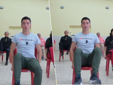 En primer lugar, el experto propone agarrarte de la silla con las manos y elevar las rodillas al pecho mientras mantiene la espalda recta. Primero eleva una rodilla, después la otra y, por último, las dos a la vez.