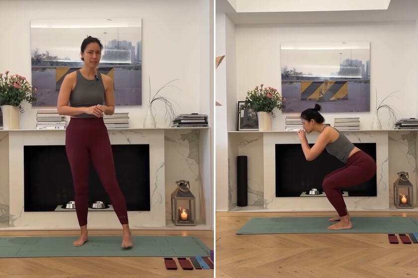 El ejercicio clásico de fuerza que conoces, pero con un twist cardio. Xuan Lan nos propone hacerlas con talones elevados o añadir un salto explosivo para elevar la frecuencia cardíaca. Simple, efectivo y sin necesidad de material.