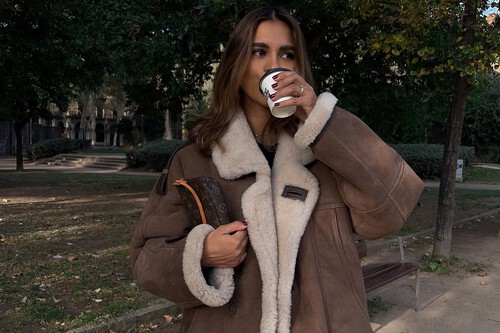 Basta con ver lo que consigue con unos sencillos vaqueros boyfriend en color negro y una chaqueta de borreguito. Son dos prendas muy streetwear y todoterreno, pero con el toque burdeos ganan una elegancia que los hace aptos incluso para ir a la oficina. Son zapas mágicas y baratas.