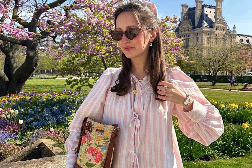Estas deportivas coquette también tienen cabida en tus outfits de oficina, porque son del mismo color que esas camisas azules masculinas que llevamos temporadas robando a nuestras parejas o padres. Podemos sumarle una falda midi o larga y tenemos el look hecho. No hace falta que sea de leopardo si tú eres de estilismos laborales sobrios, siempre puedes apostar por una falda de satén negra.