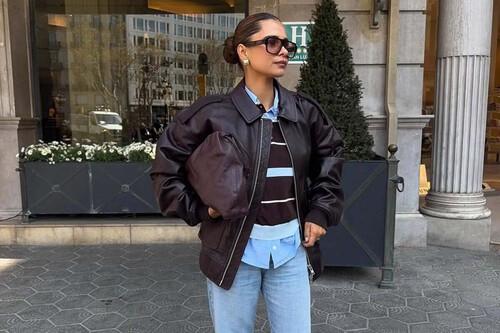 No nos olvidamos de las amantes de los looks corporativos de oficina, donde reina las americanas oversize. Si tienes a mano una marrón, estás de suerte porque este color junto con el verde militar hace un match de lo más ideal. Nosotras hemos visto esta propuesta de Stradivarius de efecto ante que sienta de cine con las deportivas.