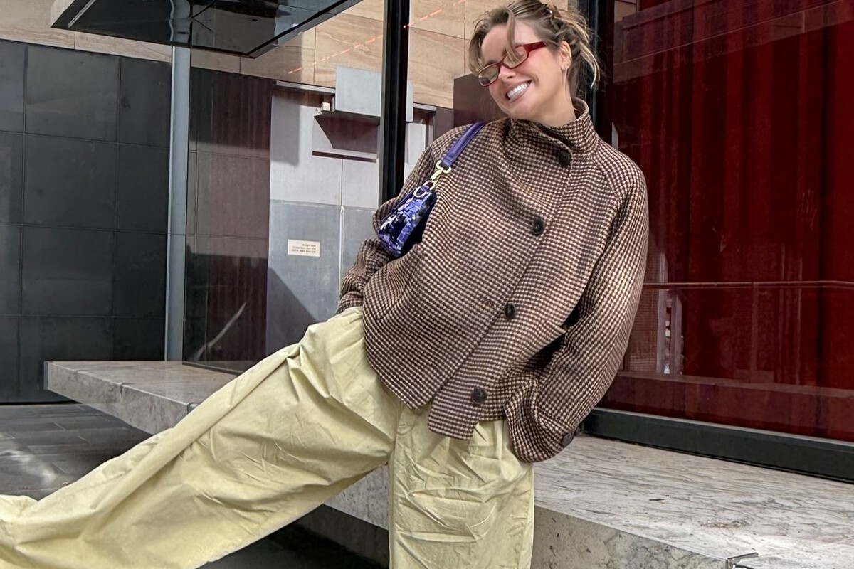 Con unos calcetines blancos y un jersey en el mismo tono azul consigues un estilismo sobrio, sofisticado y de clara experta en moda que no se ha esforzado nada y, aun así, ha conseguido el look más aesthetic de toda la ofi. Uno que se puede reutilizar sin parar, porque encaja en todas las ocasiones que queramos ir cómodas en deportivas.