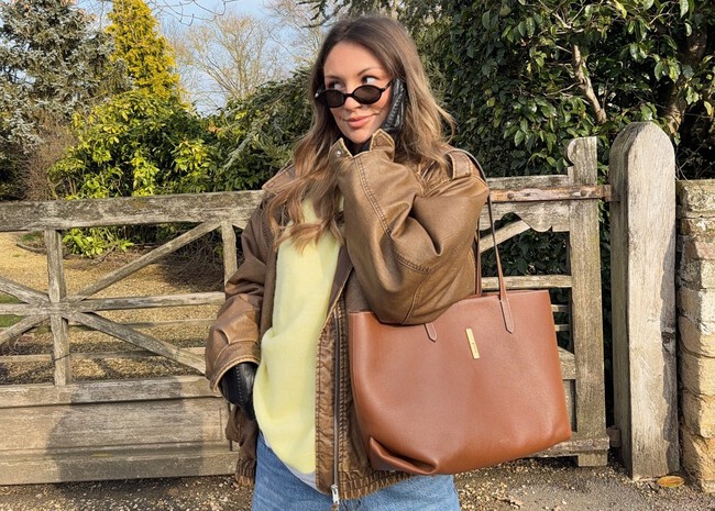 Combinar unas deportivas caramelo en el invierno de 2025 es la cosa más fácil del mundo, porque los marrones y tonos tierra han tomado el control absoluto de nuestros looks. En esta imagen tenemos la inspiración perfecta: vaqueros para dar un toque streetwear y una chaqueta y bolso de ante para mantener la sofisticación.