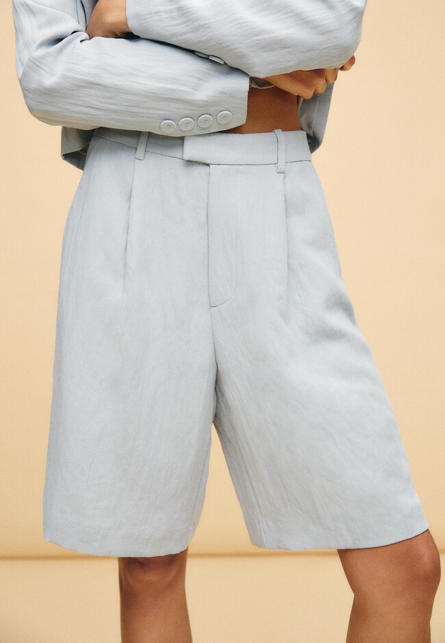 Las bermudas con traje representan el look más formal, una elección muy acertada para ir a trabajar. Una blazer + bermuda a juego y unas sandalias de tacón son la combinación perfecta para ir a la oficina en primavera. Este modelo de pinzas por encima de la rodilla es de Stradivarius.
