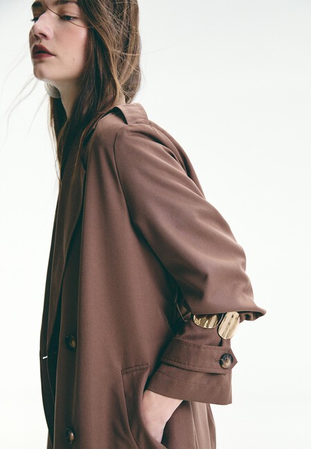 El trench es clásico y funcional, su estética es totalmente atemporal y combina perfectamente con todos los estilos. Y este modelo se apunta a la tendencia del color marrón, que queda ideal con colores neutros y tonos pastel, además del negro y los básicos vaqueros (tejido vaquero en general).