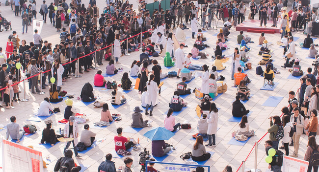 La periodista del New York Times Yan Zhuang lo intentó ese mismo año y asegura en su narración del evento que es “mitad concurso, mitad desafío contra el aburrimiento” y aseguraba que había recibido consejos de un neurocientífico, un psicólogo, un maestro zen y un monje budista. Solo participan 80 personas en un “deporte” que consiste en quedarse sentado en una colchoneta durante 90 minutos. Lo más quieto y tranquilo posible. Si te ríes, hablas, usas el móvil o te quedas dormido, estás descalificado. La competición la gana quien consigue mantener el pulso más bajo y estable y recibe una mayor puntuación del público.