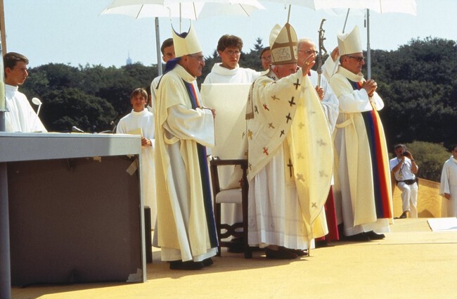 Pongámonos en situación. Corría el año 1997 y la cosmopolita capital de Francia se convirtió en el epicentro de la fe mundial. Jóvenes católicos de todos los rincones del mundo se reunieron para celebrar su fe junto al Papa y cientos de obispos. El evento estaba siendo televisado en todo el planeta cuando, de pronto, 500 clérigos y el mismísimo Juan Pablo II aparecieron ataviados con túnicas blancas, decoradas con lo que parecía ser la bandera del Orgullo. I-C-Ó-N-I-C-O.