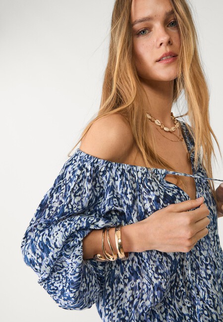 Un diseño corto en un favorecedor estampado abstracto en tonos azules y blancos que no te vas a quitar en toda la temporada estival, y que van a querer lucir las pijitas más estilosas. Además, tiene amplia disponibilidad de tallas desde la XS hasta la XL para todo tipo de cuerpos, y su precio es muy asequible 35,99 euros.