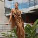Me chifla este diseño tan sensual en un marrón dorado especial. Un vestido de cuello halter, espalda al aire y detalles fruncidos, muy acertado para un evento o simplemente para una cena más formal. Queda ideal con complementos dorados o en negro. Su precio es de 29,95 euros y ahora es de 19,99 euros.