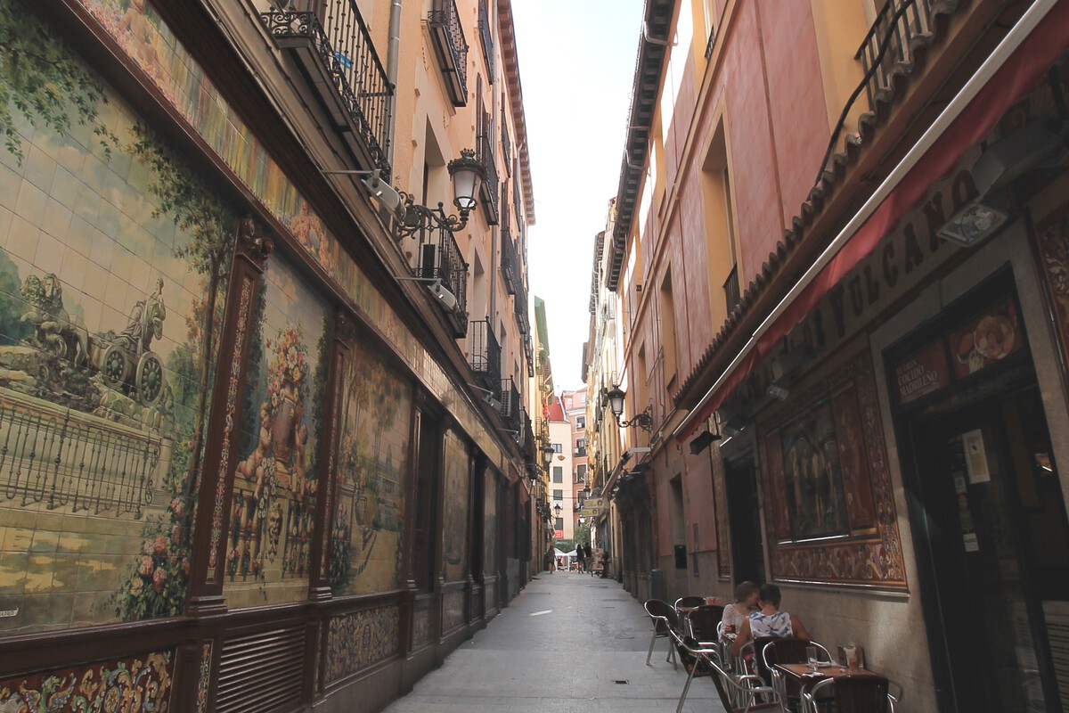 Justo en la esquina con la calle Núñez de Arce se encuentra el antiguo tablao flamenco Villa Rosa, cuyo exterior todavía está decorado con paneles cerámicos coloridos. Fueron realizados en 1928 por el ceramista Alfonso Romero Mesa, basados en bocetos de Juan Ruiz de Luna y en ellos se representan postales de distintos puntos de la capital. Su estilo tradicional le aporta un encanto muy castizo y distintivo al callejón.
