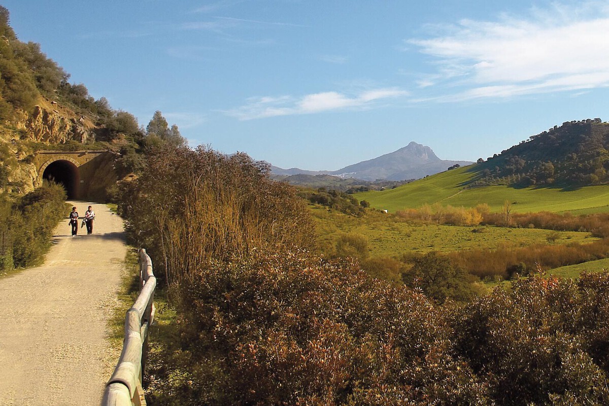 La ruta conecta las provincias de Cádiz y Sevilla a través de túneles en desuso, viaductos y un montón de pueblos con encanto. Lo que se traduce en una enriquecedora excursión por plena naturaleza a través de las sierras Béticas andaluzas. El camino se inicia en la antigua estación del municipio de Olvera, bajo la silueta de su histórico castillo, y finaliza en la antigua estación de Puerto Serrano, en la vega del río Guadalete.