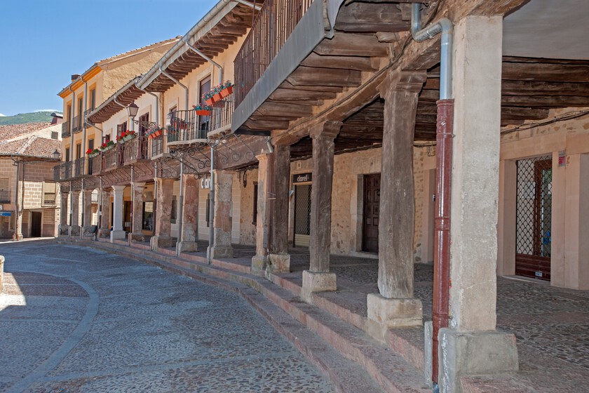 Antes de la hora de comer, Riaza recibe a sus visitantes con un tesoro arquitectónico único: su Plaza Mayor elíptica. Su encanto reside en que está dividida en dos secciones por el Ayuntamiento, con gradas de piedra, barandillas de hierro forjado y soportales que resguardan las casas serranas y los solares del siglo XVIII. Un lugar en el que contemplar los balcones corridos, las alturas irregulares de los edificios y los detalles de las cornisas de madera.