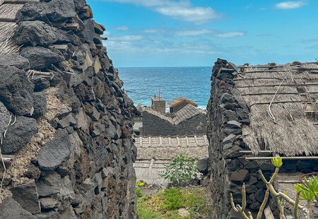 Al llegar fui recibida por un pueblo hecho de roca oscura, que me recordó mucho a los pueblos negros de Guadalajara. En este caso, un local me explicó que se llaman casas pajeras y son construcciones tradicionales herreñas, realizadas con piedra volcánica y techos de paja de centeno, para que se integren en el entorno.