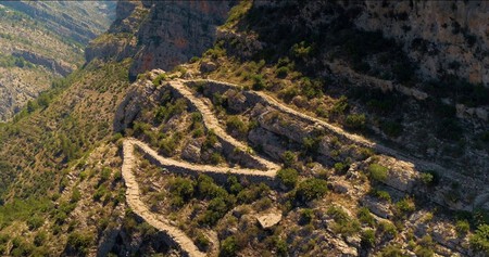 La de la Vall de Laguar, en el interior de Alicante, es una ruta senderista de las que no solo se recorren andando sino que se conquistan. Es un reto (sin dejar de ser accesible) conocido como la Catedral del Senderismo, donde cada uno de sus 6.600 escalones cuenta una historia esculpida por los moriscos que los tallaron hace siglos.