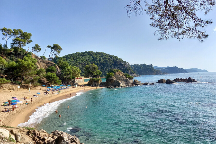 Ubicada en Lloret de Mar, uno de los centros neurálgicos del turismo de sol y mar, parece mentira que estemos diciendo que es allí donde todavía queda un reducto de paz y tranquilidad estival. Hay que buscarlo entre los acantilados del Jardín Botánico de Piña de Rosa y el pinar que rodea el camino que lleva a la Ermita de Santa Cristina, allí se esconde una playa familiar de aguas cristalinas poco profundas y arena fina.