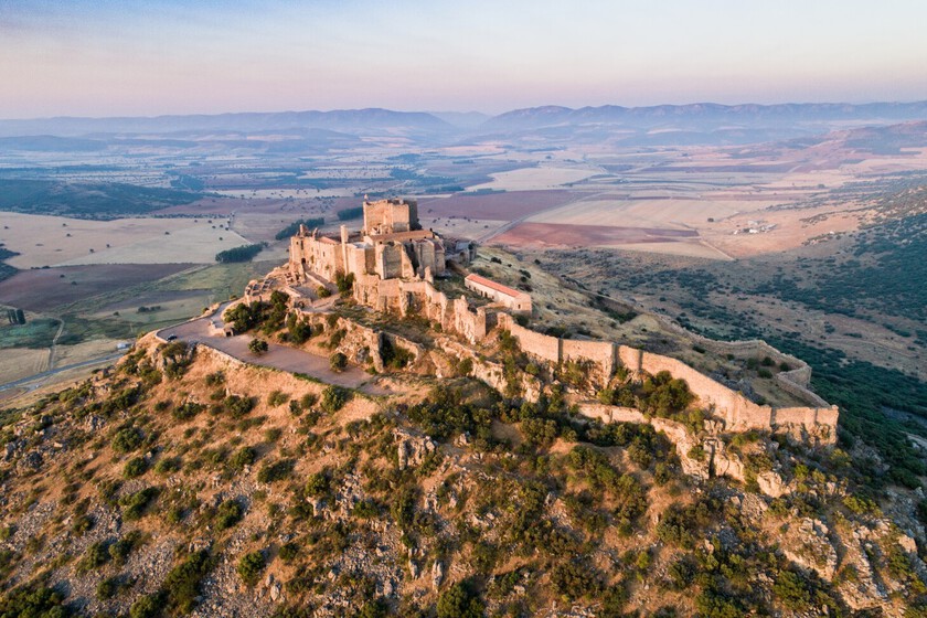 En lo más alto de un imponente cerro se alza el castillo de Calatrava la Nueva, una de las fortalezas medievales más épicas de toda España. Su silueta domina el paisaje volcánico de Ciudad Real, un punto estratégico en la Edad Media que daba acceso a toda Sierra Morena. Este paisaje, ya de por sí precioso, es solo un anticipio de la magnitud de este conjunto monumental, que va mucho más allá de un sencillo castillo.