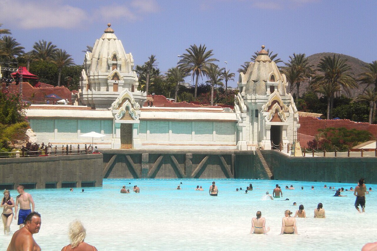 Esa mitad sur de Tenerife, que es seca y cálida y que está siempre soleada (a diferencia del norte de bosques húmedos y playas negras), es perfecta para las aventuras acuáticas que requieren de sol constante. Así que no es de extrañar que allí se ubique un parque temático que parece salido de otro continente porque, de hecho, lo está...