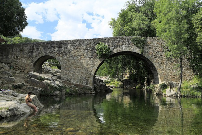 La Garganta de Alardos, en Madrigal de la Vera, es una de las más conocidas por una razón: el agua corre bajo un antiguo puente romano y la postal es de cuento. Suele estar concurrida pero, si madrugas, es posible disfrutarla con calma. Además, si te entra hambre, hay cerca chiringuitos.