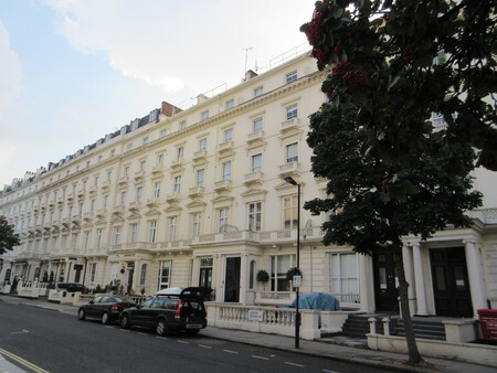 A simple vista, nada llama especialmente la atención en ella. La calle, en el elegante barrio de Bayswater (al oeste de la capital inglesa), luce como una postal típica británica de fachadas blancas, escalinatas y simetría victoriana. Una imagen que parece diseñada para que alguien pasee por ella con gabardina y sombrero bajo una llovizna fina. Sin embargo, si uno se fija un poco más y pone atención al detalle, empieza a notar que algo no es como debería